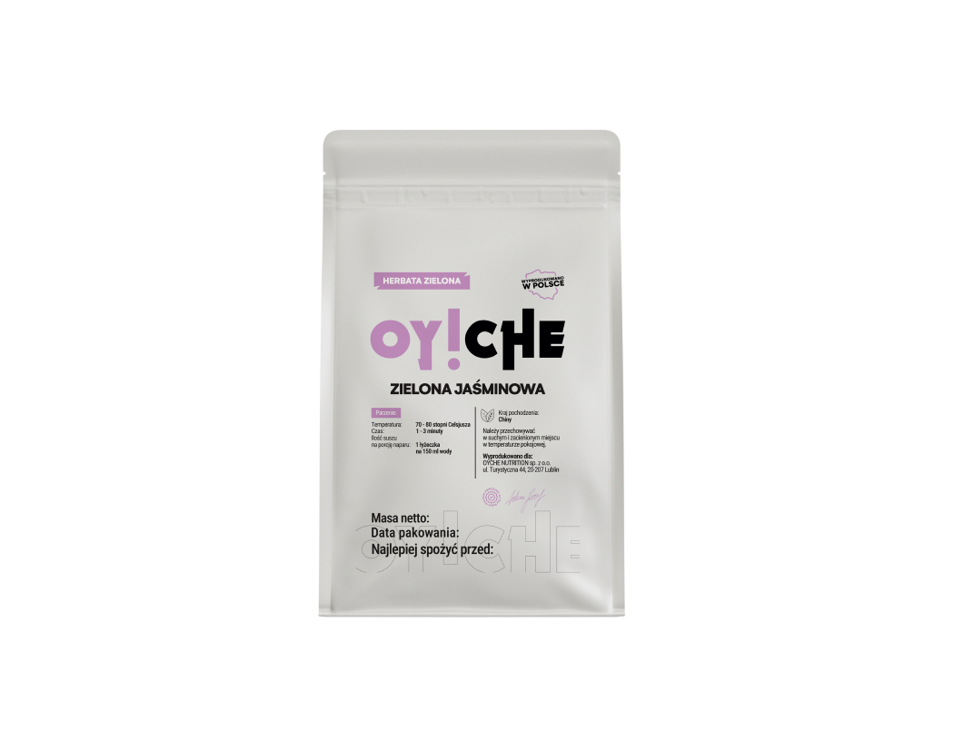 OY!CHE HERBATA ZIELONA JAŚMINOWA 100G – klasyczna zielona herbata z dodatkiem kwiatów jaśminu, prosto z Chin. Subtelny aromat, świeży smak i naturalne właściwości wspierające zdrowie i koncentrację.